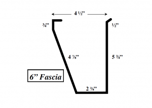 Fascia style gutters are specialty gutters that are often custom-made as a seamless unit that is affixed to a fascia board. The profile is flat at a shallow angle with the back being 90 degrees. It can be affixed directly to the ends of the rafters, performing the function of a fascia board.